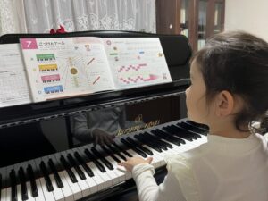 音のしっぽを最後まできいて そっと鍵盤から手を離し終えた年中Nちゃん
